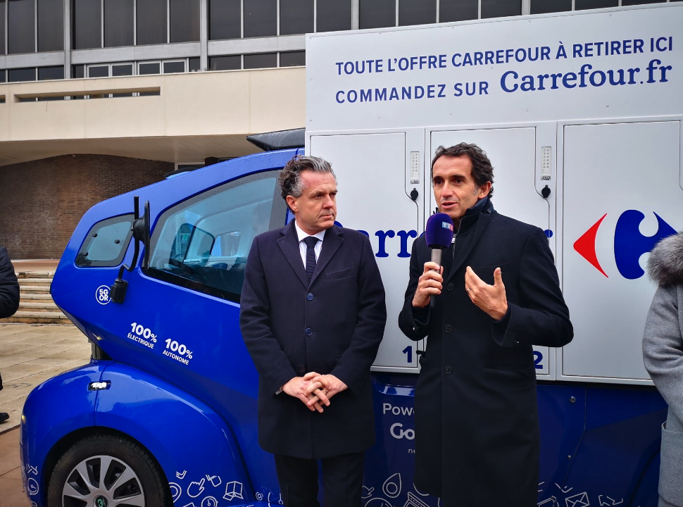 Carrefour inaugure la première navette de livraison autonome.