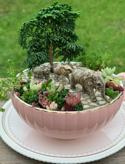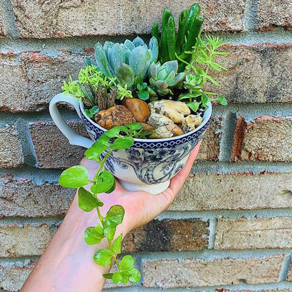Certaines personnes n’hésitent pas à utiliser tout leur service à thé obsolète pour créer un jardin complet. Une pilea dans la théière, des succulentes dans les tasses et un cactus dans le sucrier, le tout déposé dans le plateau de service. Si vous pensiez jeter le service à thé de votre grand-mère, recyclez-le en un véritable jardin d’intérieur.