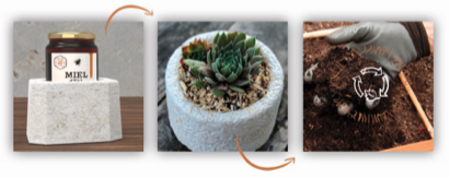 Rémi Laurant travaille également à de nouvelles applications, comme la conception de pots de fleurs étanches contenant des graines, des boîtes isothermes ou encore d’isolants dans le secteur de l’écoconstruction et de la logistique.