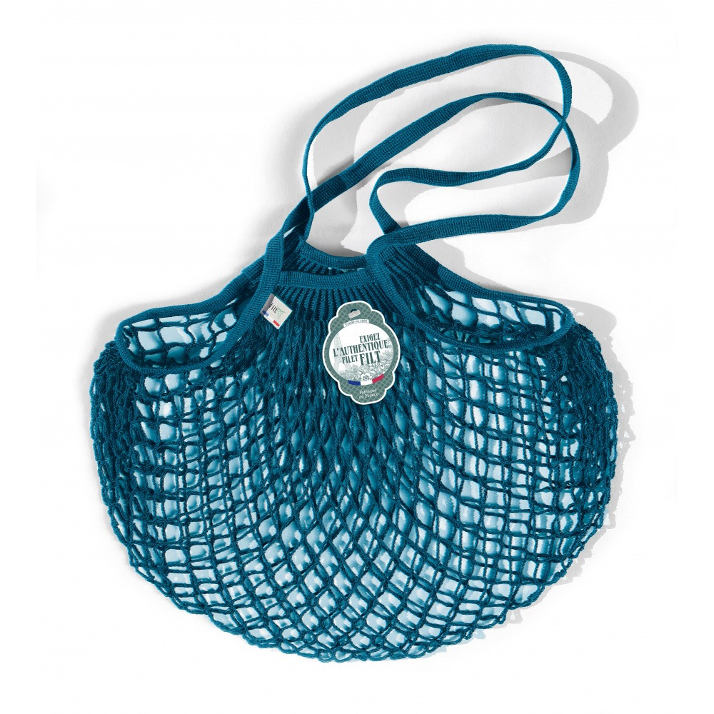 Filet de mémé à provisions porté épaule bleu aquarius en coton